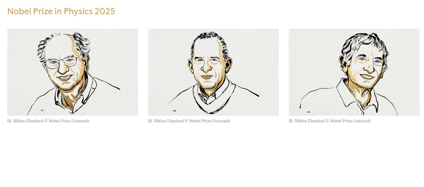 Le prix Nobel de physique 2025 a été décerné aux chercheurs britannique John Clarke, français Michel H. Devoret et américain John Martinis pour leurs recherches sur la mécanique quantique, mardi 7 octobre, par l’Académie royale des sciences de Suède à Stockholm.